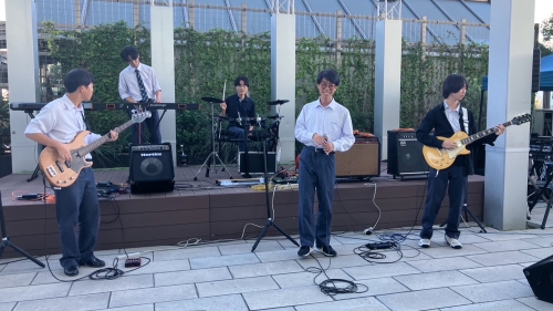 当日は雨予報でしたが天気は無事に晴れ、学校外で演奏をすることが初めてで緊張している部員もいましたが本番は楽しく演奏することができました。他校さんの演奏を聞いて新たな学びを得ることができたと思います。