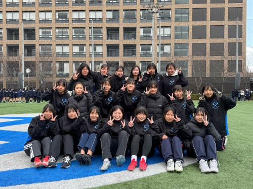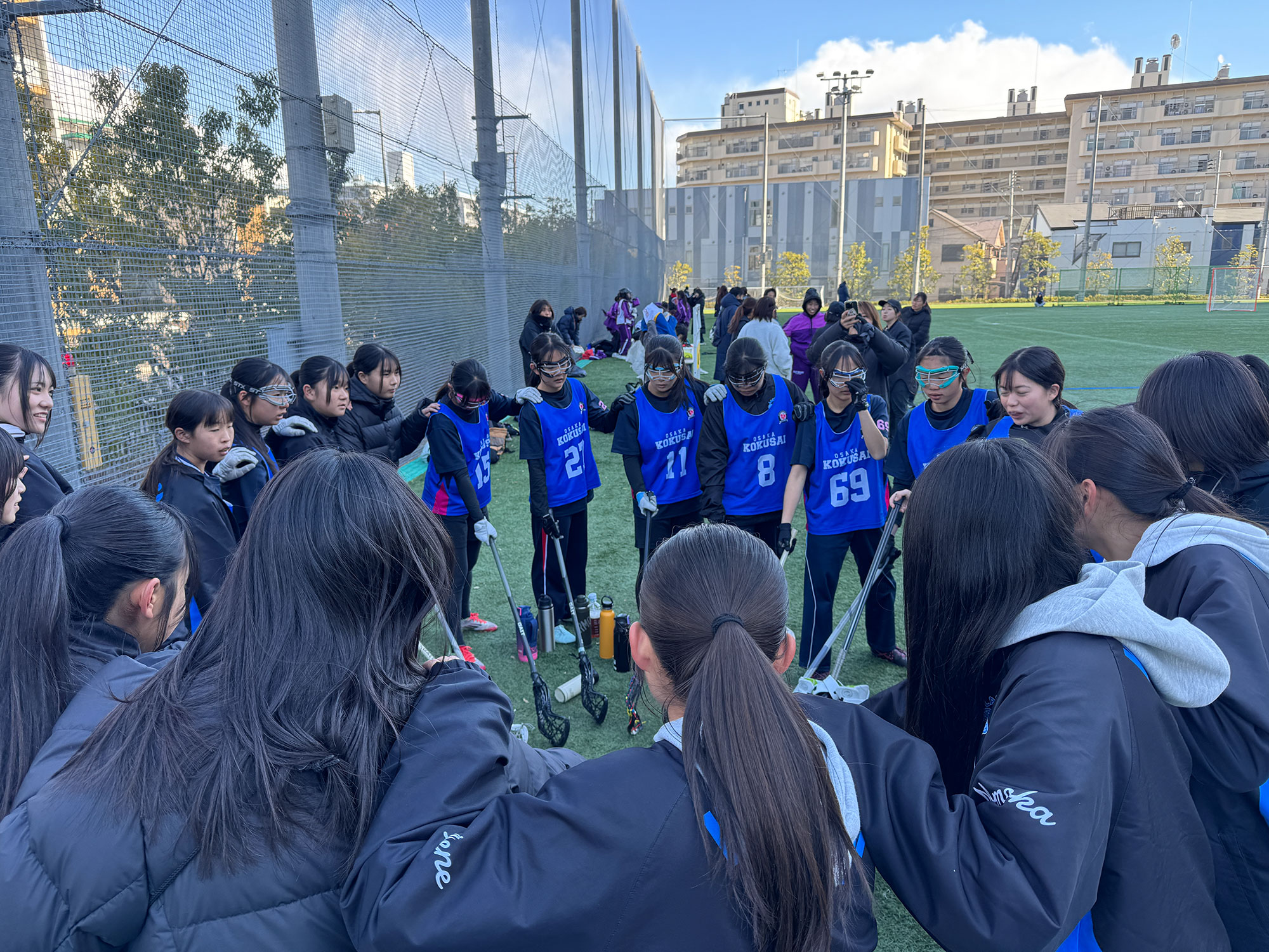 1月11日(日)、第3回関西中高女子ラクロス1年生大会(ウインター)に出場しました。この大会は中1や高1を中心としたまだラクロス経験の少ない生徒の育成を目的とした大会です。本校からも中1・中2・高1の生徒が出場しました。試合への出場経験が少ない中1の生徒は、とても緊張していましたが、練習とは違った実践の場を経験できる良い機会となりました。強い相手でも気持ちを落とさずに最後までプレーすることを目標にして臨みましたが、みんなで声をかけ合って戦い切ることができました。また、今回の試合で感じた個人の技術の足りないところや、チームとしての弱点を今後の練習に活かしていきたいと思います。引き続き応援よろしくお願いいたします。