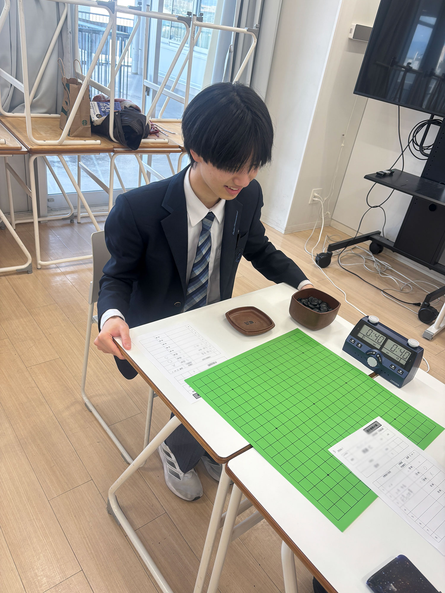 本校からは高校1年生5名(北本、小川、松田、山田、工藤)、中学2年生1名(明神)が参加しました。今回の大会は全国大会に繋がる大事な大会であったため、いつもより練習量を増やし挑戦しました。また初めての男女混合ということもあり、同校同士での対局もあり、気血の消耗が激しい戦いとなりました。私達の格言である「ピンチはチャンス」を胸に対局に臨んだ結果、大阪府4位松田、5位北本、6位小川と成績を残すことができました。これにより、北本、松田が7月28日から秋田県で行われる第50回全国高等学校総合文化祭(全国大会)に出場することが決まりました。