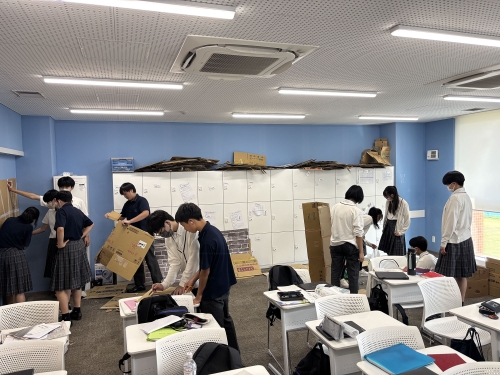 文化祭 2025.09.10 9/12の中学生だけの文化祭(発表会)、9/13の中高合同の文化祭と2日間にわたって開催される文化祭に向けて、9/8(月)から中学生だけひと足先に文化祭週間がスタートしました。 文化祭週間では、午後の時間を使って1日目に行う演劇やコーラスの練習、2日目に行う縁日や展示の準備などを、クラスや学年での協力し、互いに意見を出し合いながら準備に取り組んでいました。 文化祭まであと少し! 生徒のみんな、協力してがんばろう!