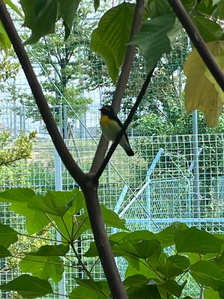 日本には夏鳥として飛来します。山の中の落葉樹の森林で子育てを行い、秋に南へ渡ります。鳥好きにとって、この渡りの時期は狙い目で、都市部の公園でもお目にかかることがあります。このキビタキも渡りの途中と見えて、その後、校内で確認することはありませんでした。