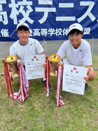 ダブルスで本校の期待の1年生ペアである安藤大貴くんと中富奏太くんが見事優勝をはたしました!スピード感にあふれ、センスが光るプレーを見せてくれた2人!