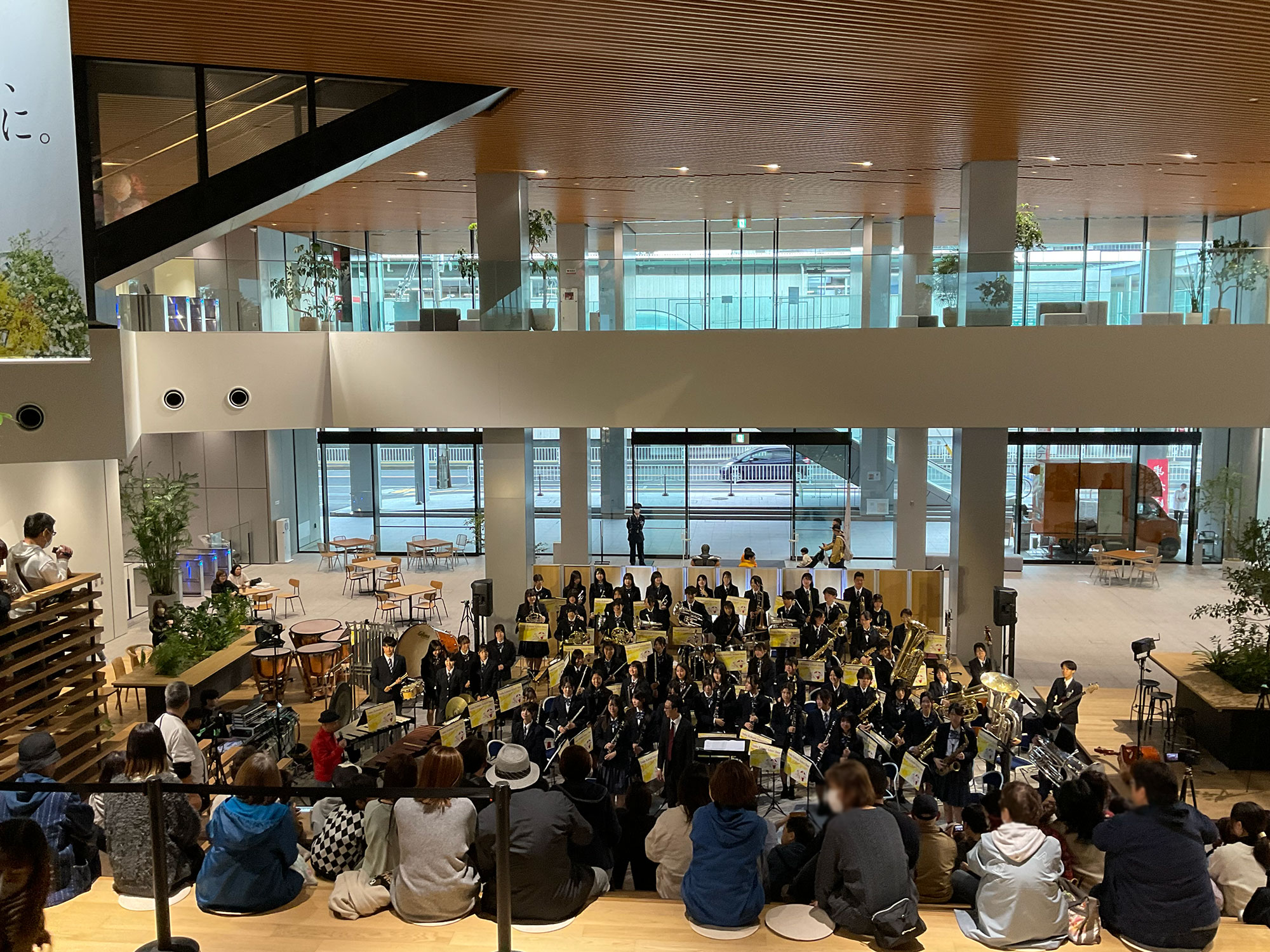 初めての参加となるこの地域のイベントですが、PanasonicXCという、西三荘駅直結の新しい建物の中で演奏いたしました。大階段の下がステージになっており、開放感のある吹き抜けが音に広がりをもたらせてくれました。
