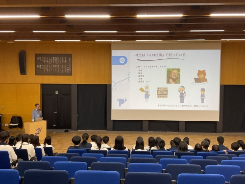 そこで今回の事前学習では、仕事の現場で実際に活躍している方のお話を聞く講演会が行われました。講演を通して、私たちは「働く」という行為の裏側には、たくさんの人々の支えや思い、努力があることを学びました。単にお金を稼ぐためだけではなく、誰かの役に立ちたいという思いや、仲間と協力して一つのことを成し遂げる喜びなど、「働くこと」には様々な意味や価値が込められていることに気づくことができました。