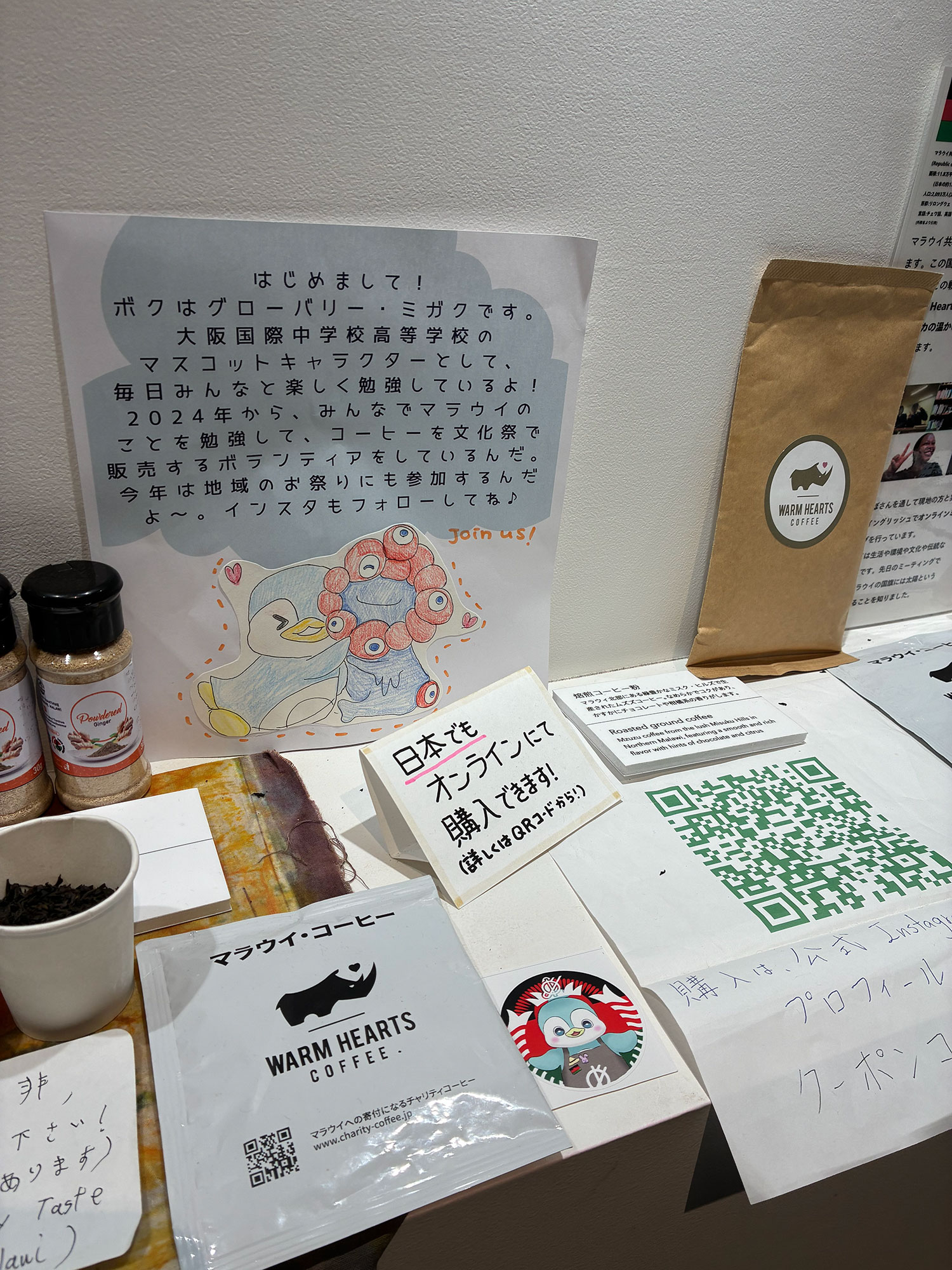 なんとコモンズ-Aのマラウイ共和国パビリオンに、大阪国際中学校高等学校のマラウイ講座のコーナーを作っていただきました!いつも活動を支えてくださっている、NPO法人せいぼさんがパビリオンのお手伝いをされていて、そのご縁でスペースをいただきました。