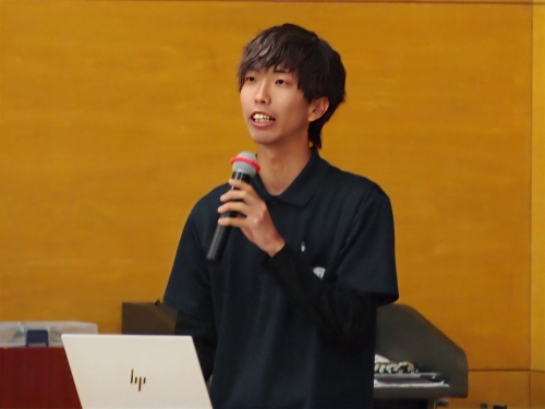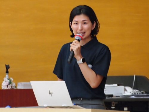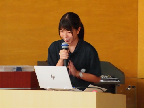 教頭の杉井先生より、あいさつと本校の教育理念や目標とする生徒像などの説明、そして在校生たちの学校生活の様子などの紹介がありました。