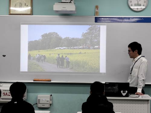 長野県の最北端に位置する飯山市より飯山市役所の藍葉様、小坂様、塩崎農園の塩崎様にお越しいただき、講義をしていただきました。