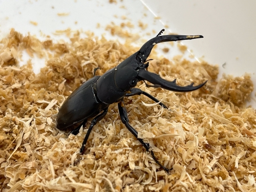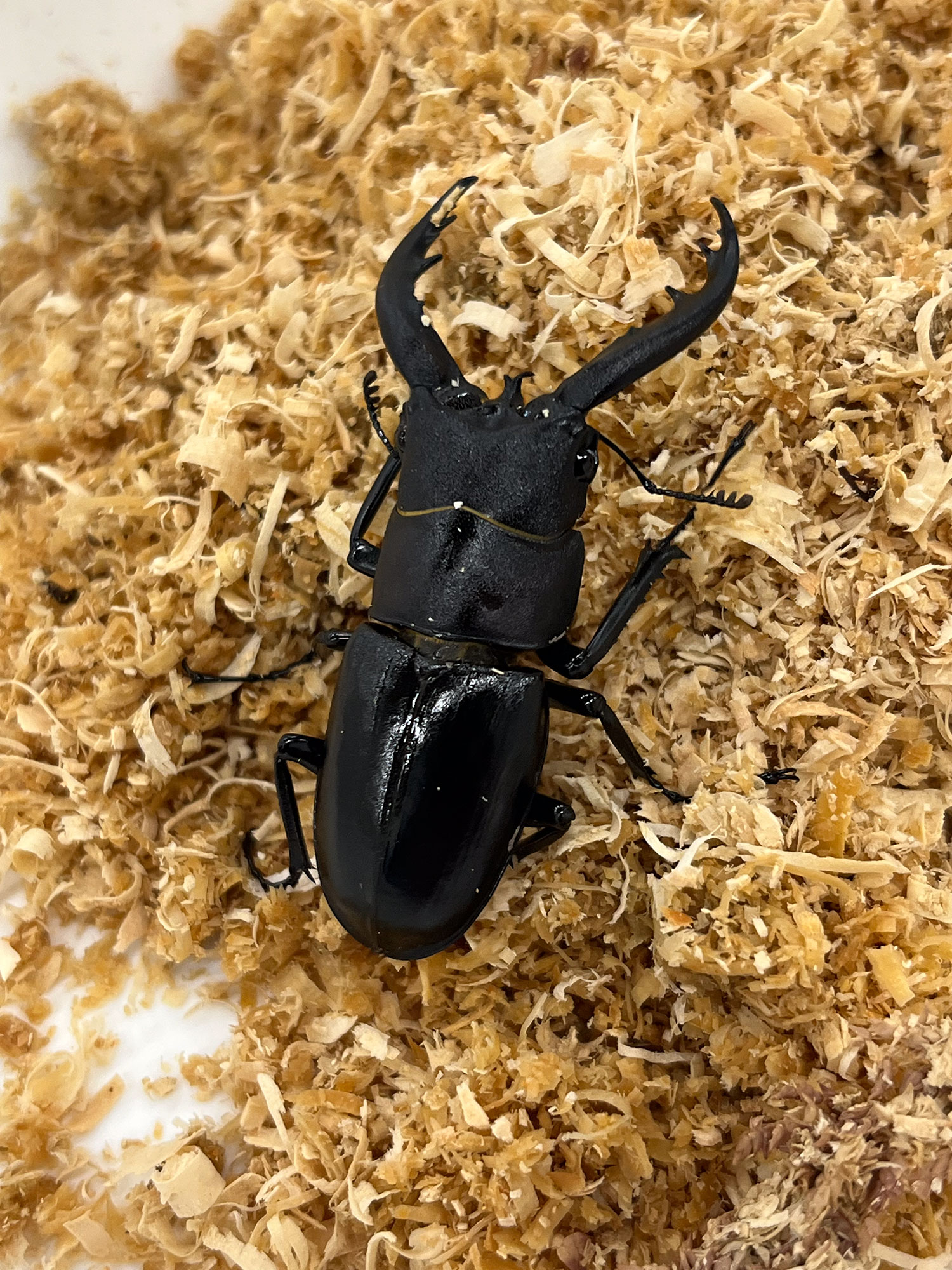 「昆虫の大顎の利用方法は摂食、闘争、巣作り、脱出そして捕食者から逃れるための防御など非常に多様で、種類によって大きく異なる…」とAIは説明してくれています。クワガタムシ類の場合は餌場あるいはメスに近づいてきたオスを排除するために利用され、つまり闘争用と考えていいでしょう。ノコギリクワガタの雌の大顎は大きく発達していません。