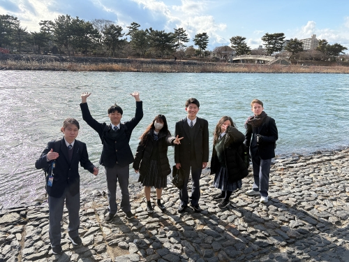 宇治川のほとりを歩きながら、3年間の学校生活を振り返り、心安らぐひとときを過ごしました。卒業を間近に控え、それぞれが次のステージへの期待を抱く一方で、共に過ごした仲間との別れを惜しむ気持ちも感じられる一日となりました。本日のフィールドワークは、古典文学への理解を深めるとともに仲間との思い出をさらに深める、貴重な時間となりました。