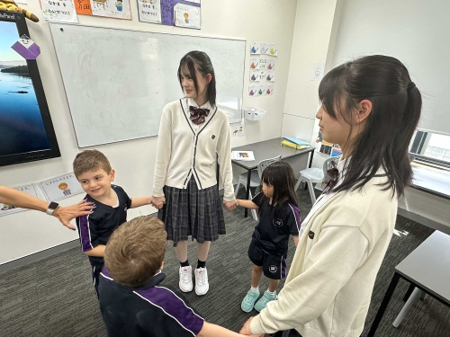 途中には、年長さんや小学2年生、5年生の日本語の授業にお邪魔して、お姉さん、お兄さんとして頑張っていました。