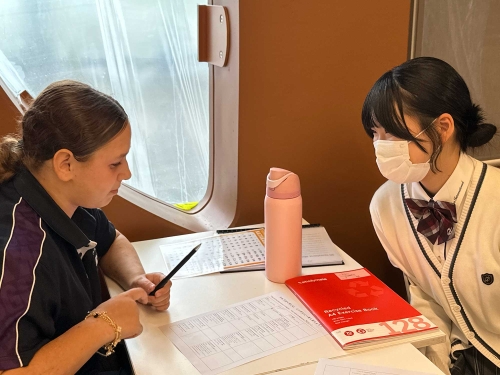 現地のYEAR10(高校1年生)と、本校生徒で日本語と英語を使いながらtalking!