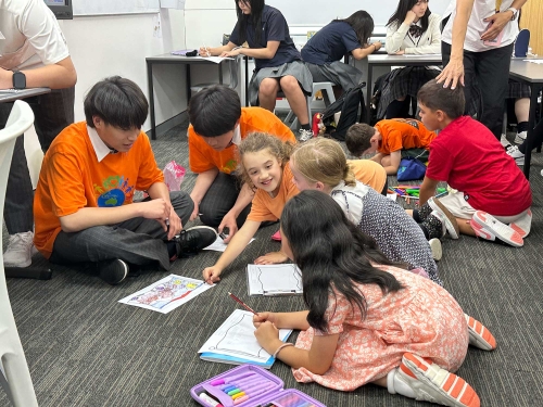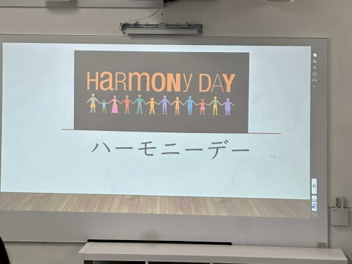 参加した授業の中には、harmony dayの取り組みとしてオリジナルの国旗をつくろうというものがあり、楽しく一緒に取り組みました。