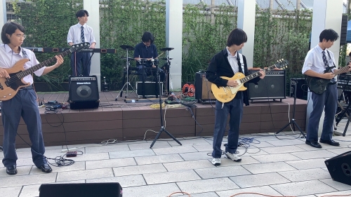当日は雨予報でしたが天気は無事に晴れ、学校外で演奏をすることが初めてで緊張している部員もいましたが本番は楽しく演奏することができました。他校さんの演奏を聞いて新たな学びを得ることができたと思います。