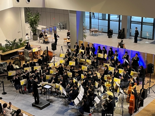 初めての参加となるこの地域のイベントですが、PanasonicXCという、西三荘駅直結の新しい建物の中で演奏いたしました。大階段の下がステージになっており、開放感のある吹き抜けが音に広がりをもたらせてくれました。