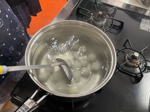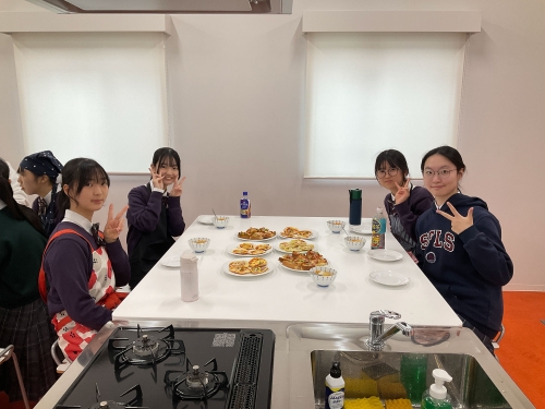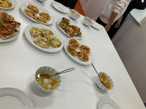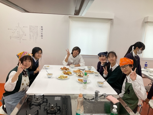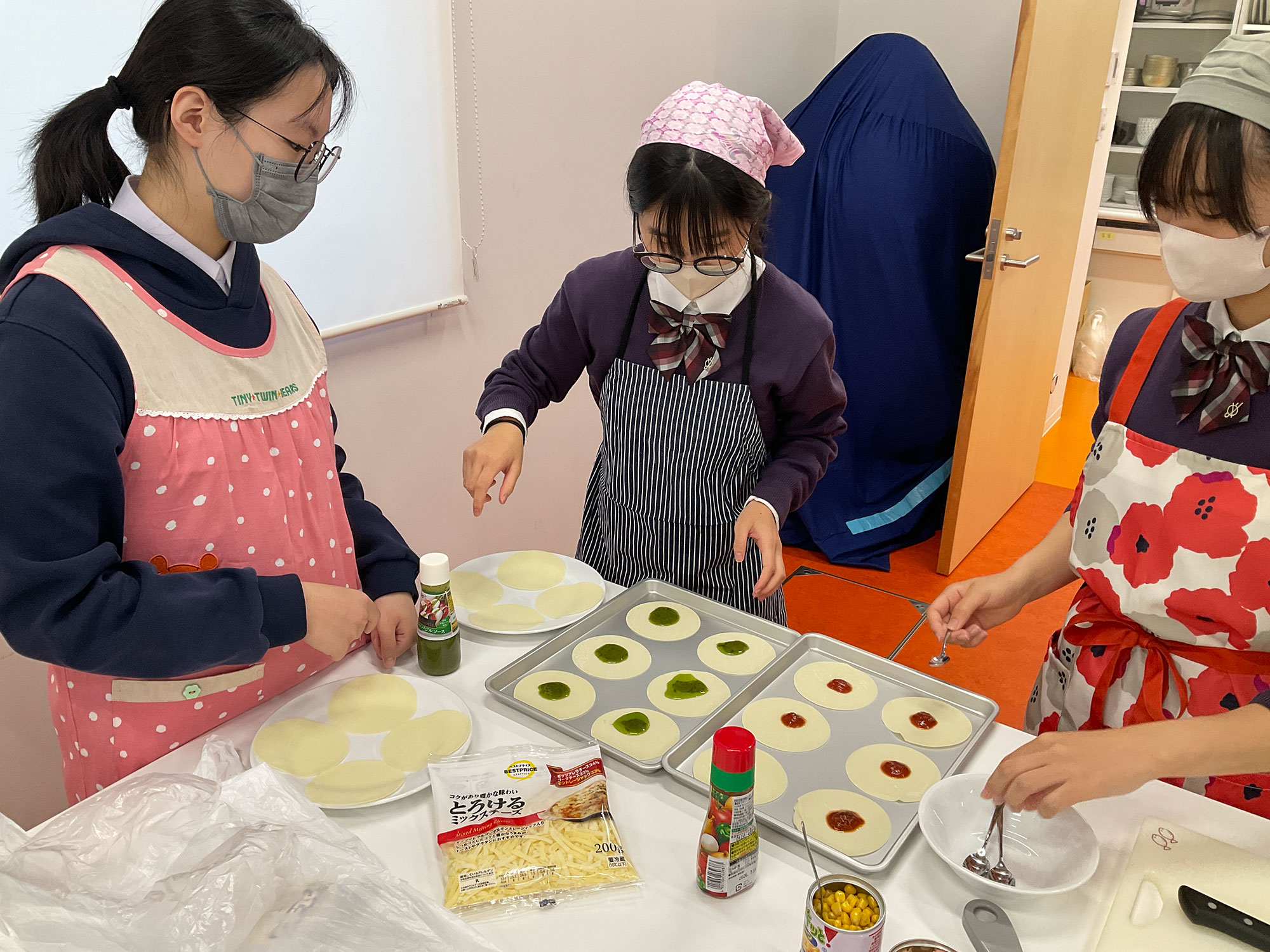 ESS 2025.11.28 中学ESSでは、本校で留学中の中国とタイからの留学生2名を招き、クッキングを通した異文化交流活動を実施しました。 今回は餃子の皮を使ったミニピザと、白玉団子入りのフルーツポンチを協力して作りました。 調理の過程では、日本語と英語の両方を共通言語として用い、互いの文化について紹介し合いながら楽しい時間を共有できました。 完成した料理はどれも見た目も味も素晴らしく、自然と笑顔になりました。 今後もESSでは、体験を通して世界とつながる活動を行っていきたいと思います。