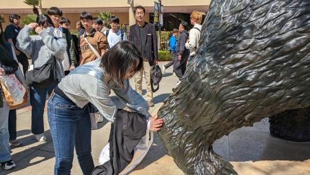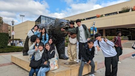 UCLAのマスコット、熊のBruinの像の前で、UCLAの学生さんたちと待ち合わせ。