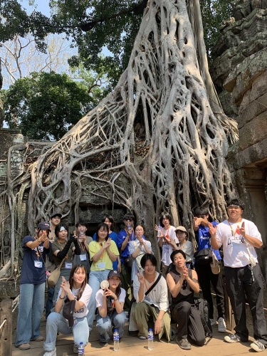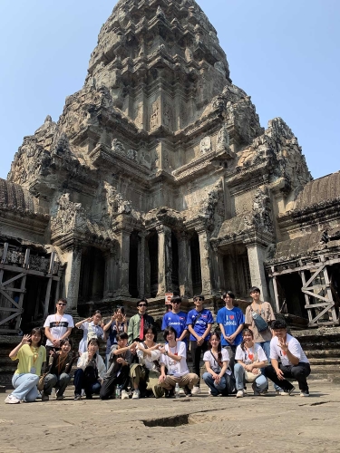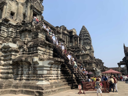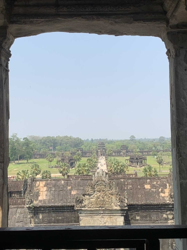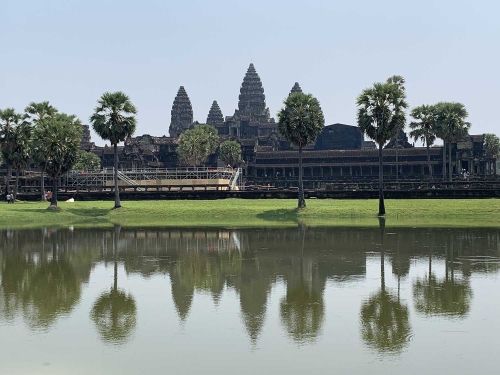 まず初めに訪れたのは、カンボジアといえば誰もが知っているあの有名なアンコールワットです。前日が、日の出が1番高い塔に重なる日だったらしく、世界中から写真家なども集まり多くの観光客がいました。裏側から入り、急な階段を登り一番高い塔まで行きました。そして正面の方に移動し、水辺に反射する映え写真を撮ることができました。