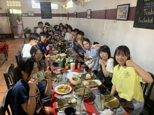 アンコールワットを堪能した後は、近くのクメールファミリーレストランで昼食をとりました。この旅で何度かクメール料理を食べましたが、段々と味に慣れてきたのか、最初来た時よりも抵抗なくみんな食べれるようになってきました。