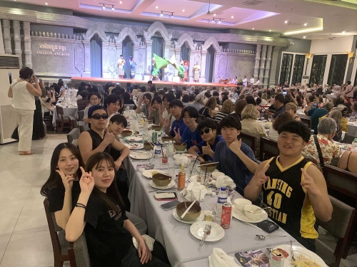 夕食はAMAZON ANGKORでバイキング料理でした。各ブースごとにシェフがいたり、野外にはBBQブースもあり、いろんな料理が楽しめました。そして食事をしながらクメール民族舞踊を観賞しました。会場は観光客で満員となり、かなり賑わっていました。