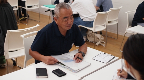 並行して、国際バカロレアコースの説明会が開催されました。卒業生の堤千丈さん、そして在校生の中村カリナさんと中村元信さんによる体験談も催されました。