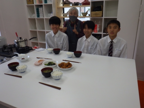 ボランティアさんと色々なお話をしながら一緒に調理をさせていただく機会は生徒たちにとっては大切な学びの場。まさにプチ民泊体験です。ボランティアさんも中学生と一緒に作業することを楽しみにしていただいており、大変嬉しく思っております。