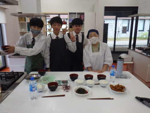 2学期最後の授業は調理実習。9月に種まきをしたダイコン、カブを収穫・調理し、お味噌汁を作りました。また、長野県飯山市さんからいただいたお米を炊いて美味しくいただきました。