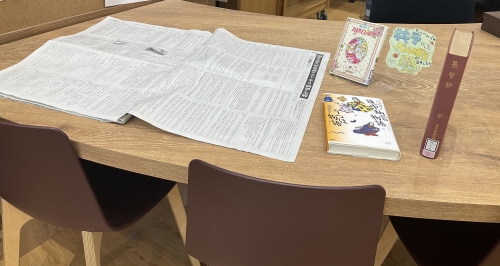 新聞に掲載されている共通テストの問題とともに、カウンターに展示していますので、この機会にぜひ、伝説の少女漫画を経験してみてください。