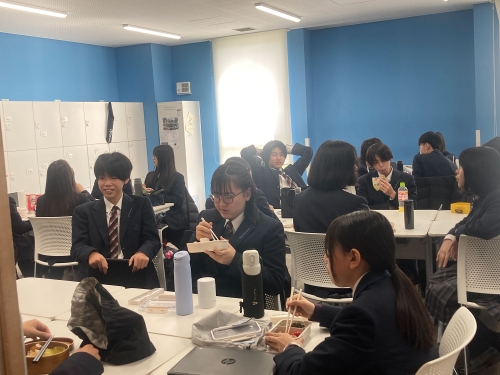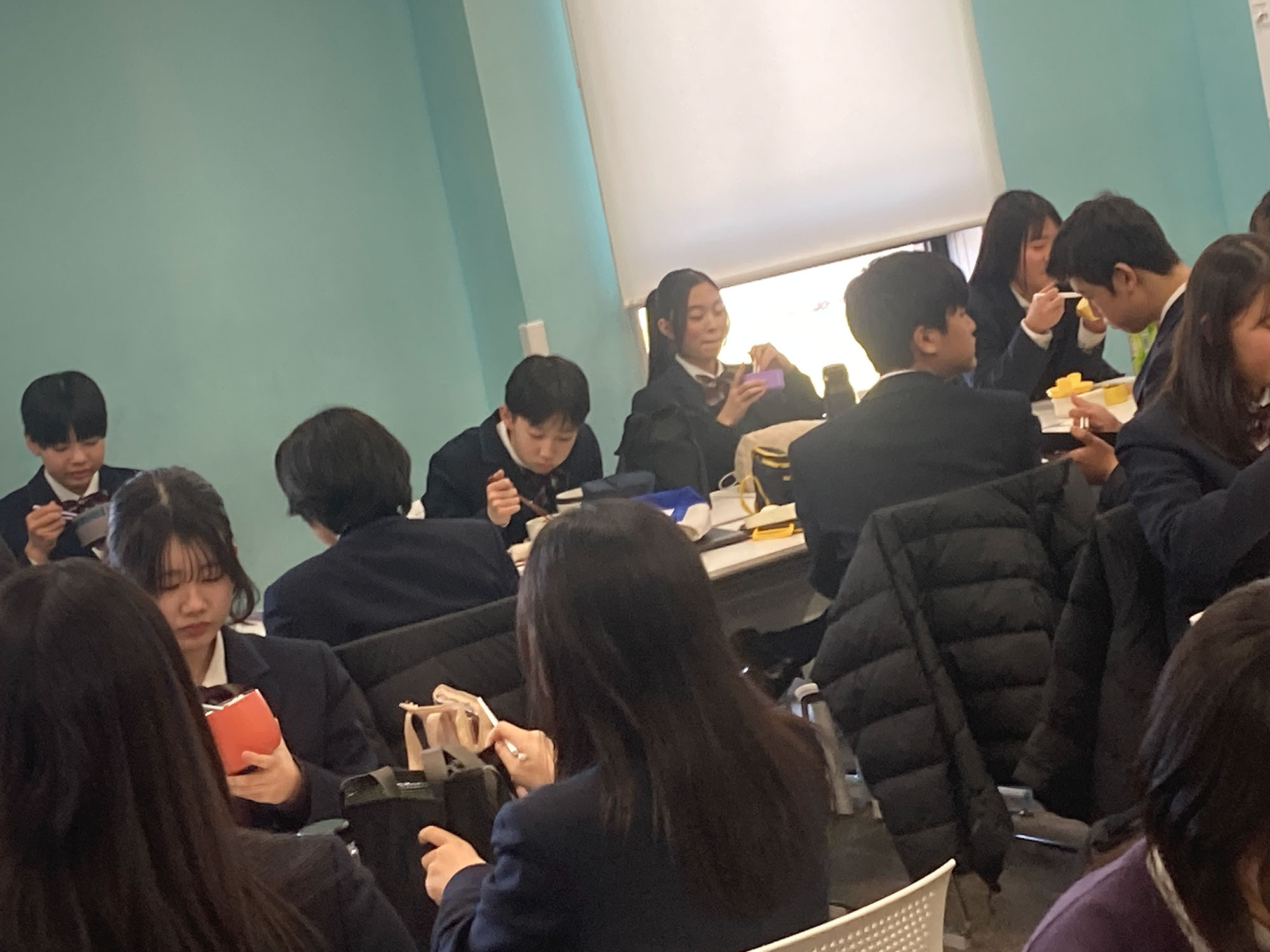 年度の締めくくりとして、中学2年生が企画した「ランチ交流会」を実施しました。今回の取り組みは、生徒自身の発案によるもので、クラスや性別の枠を越えて交流できる時間をつくろうという思いからスタートしました。